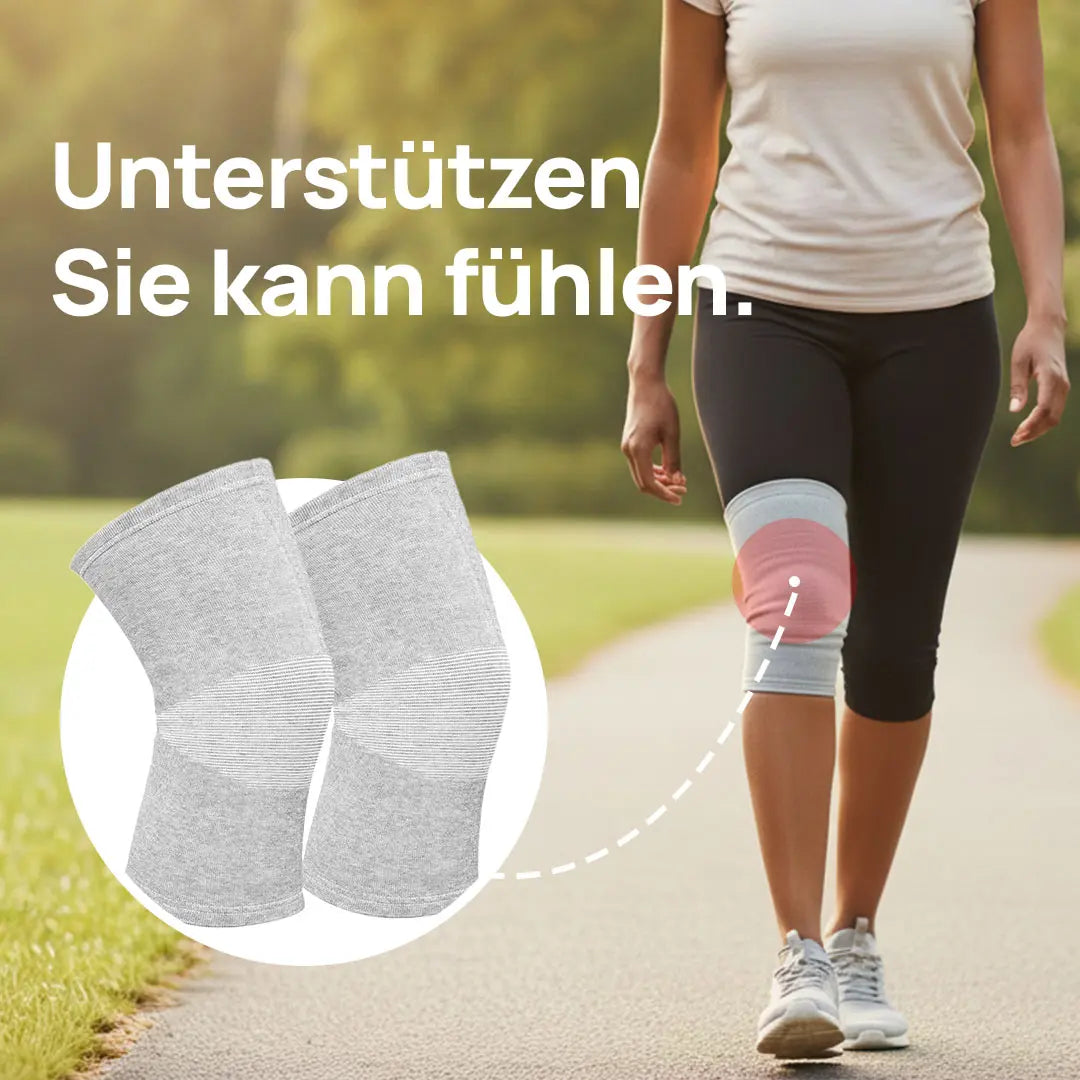 Erleben Sie, wie die atmungsaktive Bambusfaser-Kompression Ihre Knie stabilisiert und Schmerzen spürbar reduzieren kann.
